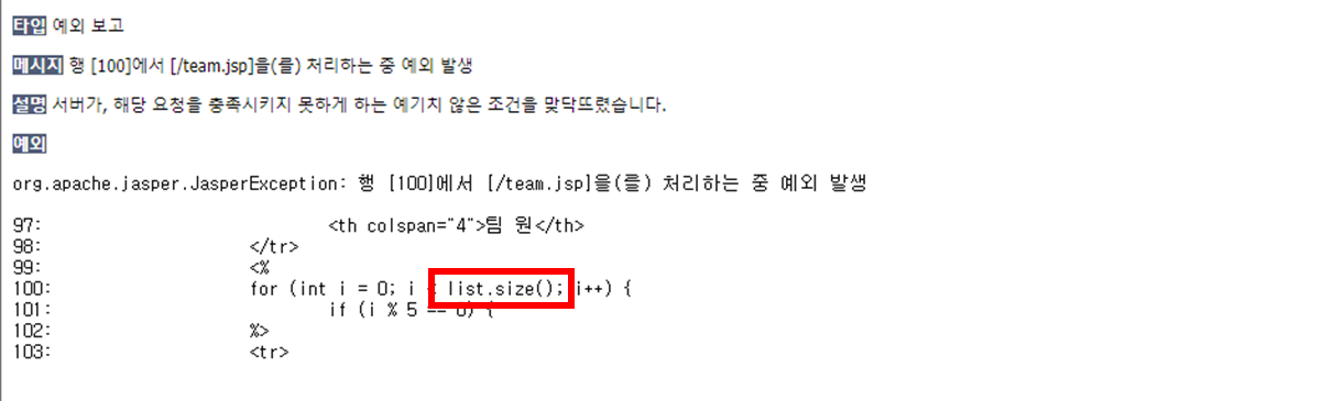 01) 'team.jsp' 코드에서 아래와 같은 코드가 없을 경우 오류 발생