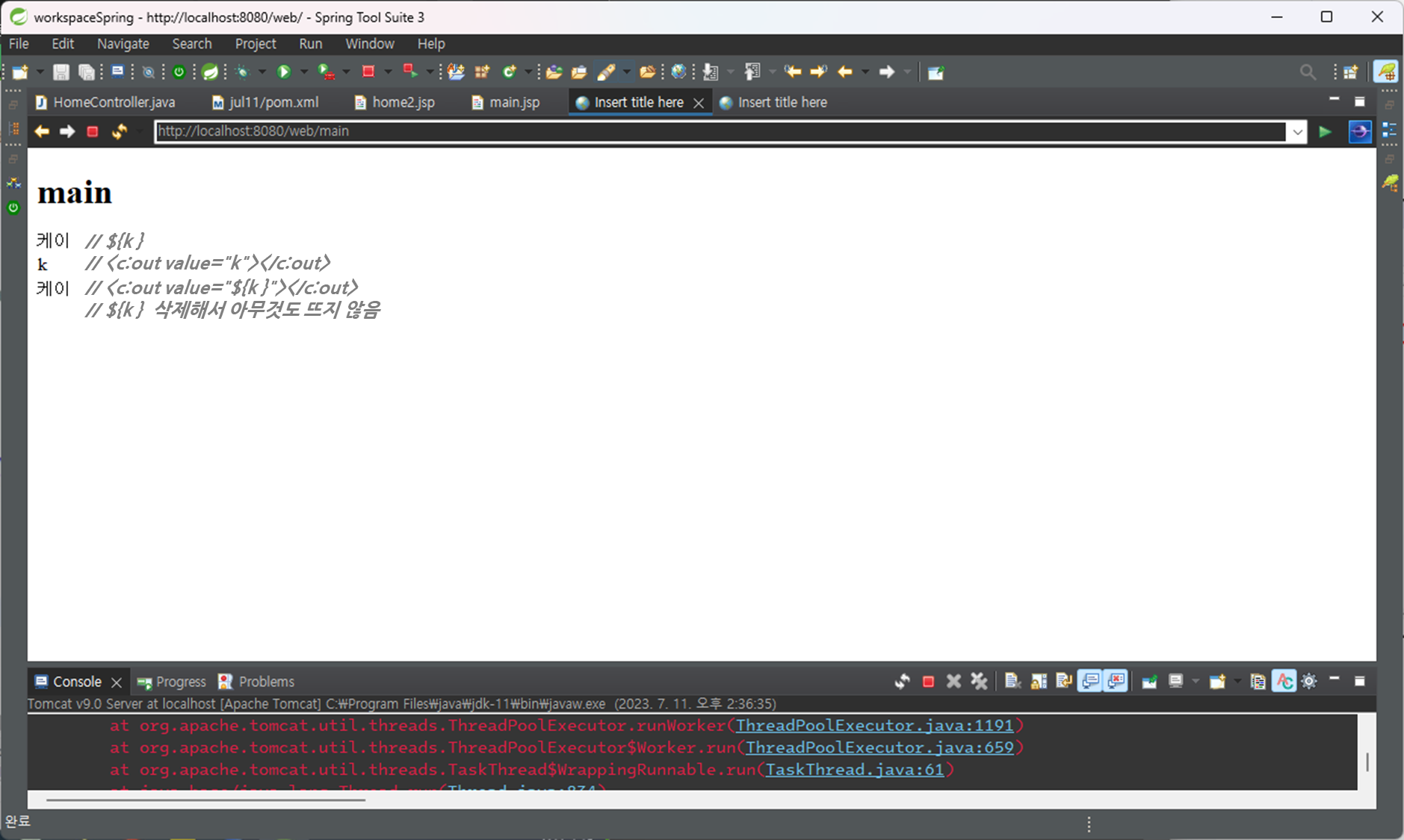 방법 2) <c:set var="y">와이</c:set> - 변수 삭제 : <c:remove/>