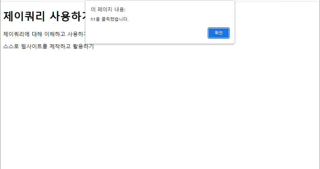 - 활용 2 : h1을 입력했을 때 'h1을 클릭했습니다.'가 나오게 하기