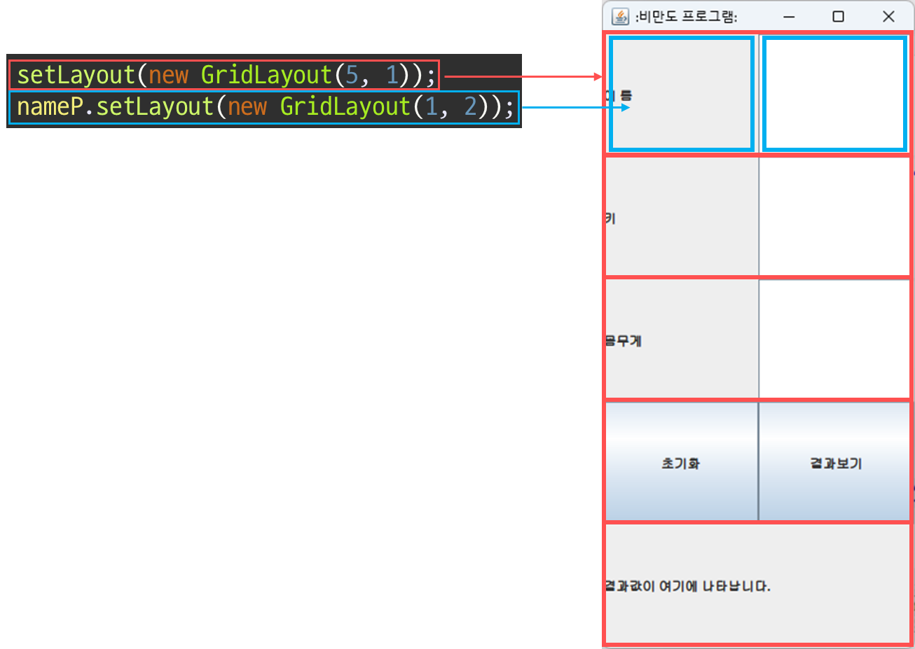 - ex) FlowLayout, BorderLayout, GridLayout, CardLayout