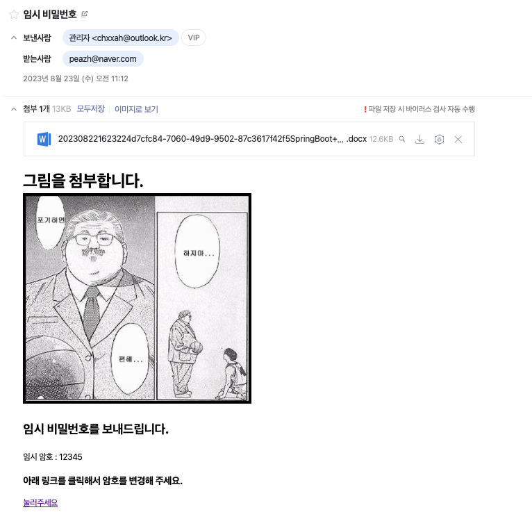 html += "<h3>아래 링크를 클릭해서 암호를 변경해 주세요.</h3>";